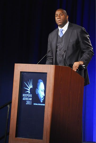 Magic Johnson spoke to the audience.