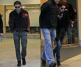 Robert Pattinson sported a sexy letterman jacket as he arrived at the Vancouver airport today. Kristen Stewart was along for the flight, though the injured actress stayed mostly hidden as they made their way to their awaiting vehicles. The twosome are in town to continue work on Breaking Dawn as production moves from Louisiana to the Canadian city where they shot New Moon and Eclipse. Robert is coming off a weekend of doing press for Water For Elephants, and we got a peek at his sweet chemistry with Reese Witherspoon when the two talked about their love scenes. He's back in Twilight mode for the time being, and he's also getting into the act of playing a father. Mackenzie Foy, who plays Edward and Bella's daughter Renesmee, touched down and was spotted signing autographs for fans on Sunday.